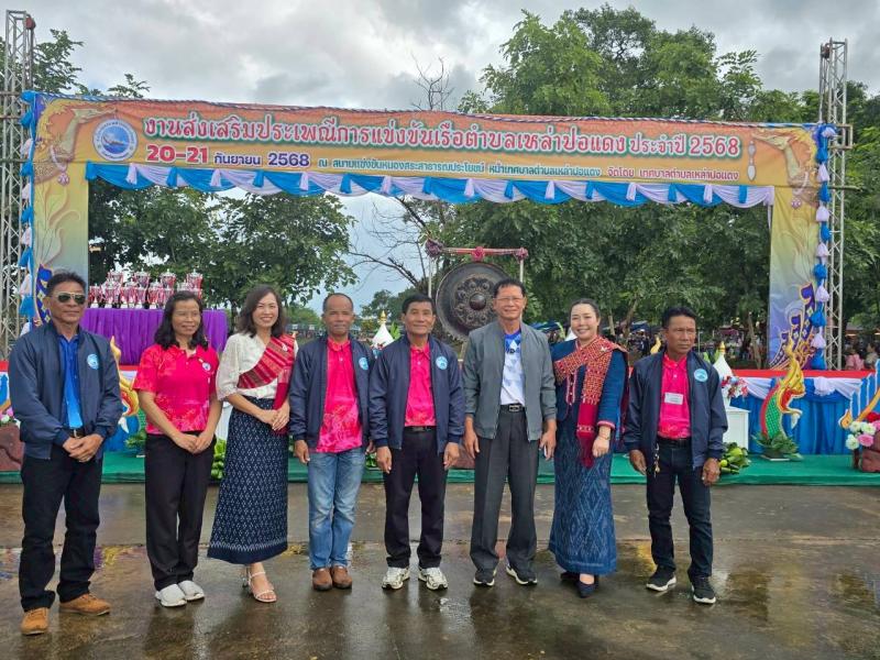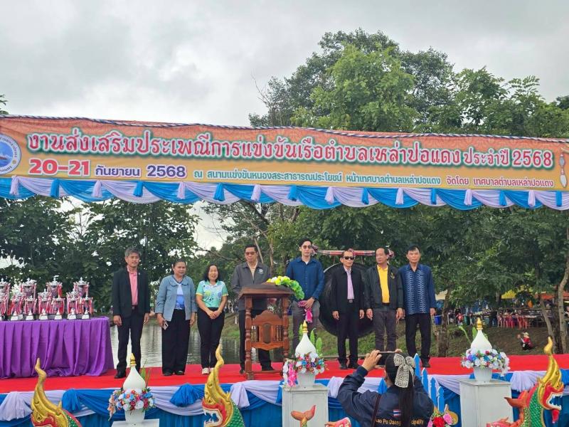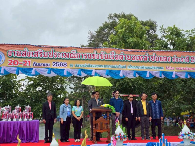นายลำไพ งิ้วพรม นายกเทศมนตรีตำบลเหล่าปอแดง ประธานจัดงานส่งเสริมประเพณีแข่งขันเรือยาว ประจำปี 2568 ในระหว่างวันที่ 20-21 กันยายน พ.ศ. 2568