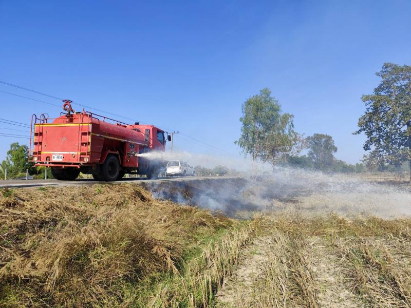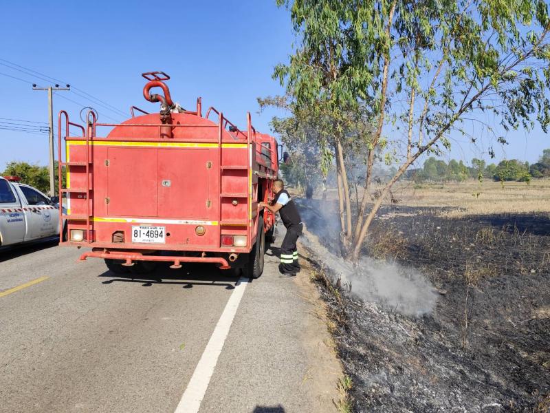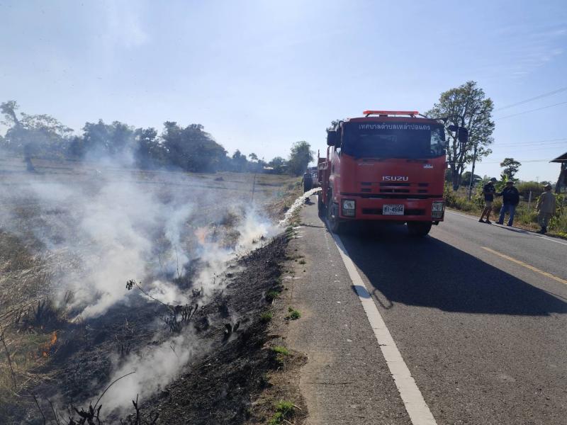 งานป้องกันและบรรเทาสาธารณภัยเทศบาลตำบลเหล่าปอแดง ออกระงับเหตุไฟไหม้ บริเวณขอบถนนติดกับทุ่งนาชาวบ้าน พร้อมกับทีมกู้ชีพและเจ้าหน้าที่ อปพร. ณ บ้านท่าวัด ตำบลเหล่าปอแดง อำเภอเมือง จังหวัดสกลนคร