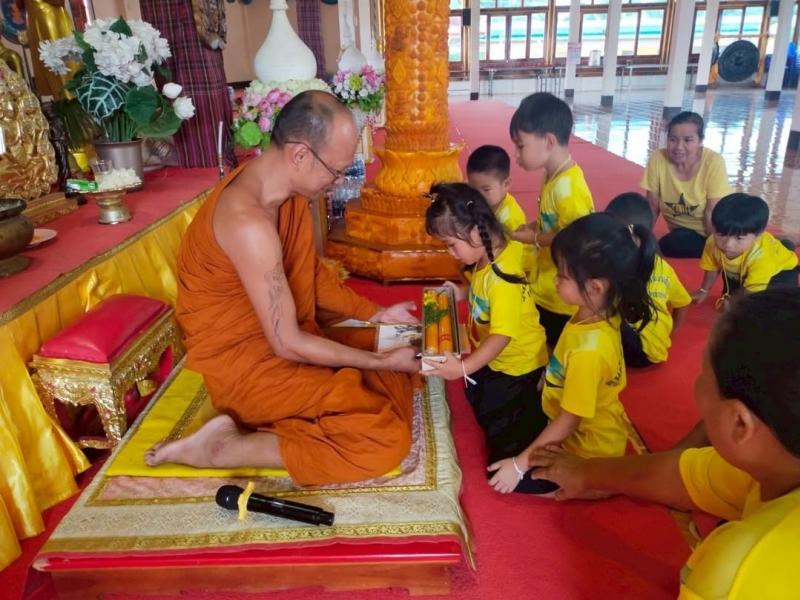 description นางสาวปุณรดา มีระหงษ์ ผู้อำนวยการสถานศึกษา นำคณะครู และเด็กนักเรียนศูนย์พัฒนาเด็กเล็กบ้านเหล่าปอแดง ร่วมกิจกรรมพัฒนาผู้เรียน พัฒนาคุณธรรม จริยธรรมเด็กปฐมวัย นมัสการหลวงพ่อองค์แสน ถวายเทียนเข้าพรรษาและกิจกรรมจิตอาสาพัฒนารอบๆบริเวณวัด ณ วัดศิริพัฒนาราม บ้านหนองปลาน้อย ตำบลเหล่าปอแดง อำเภอเมือง จังหวัดสกลนคร person admin
