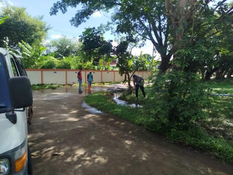 กองช่างเทศบาลตำบลเหล่าปอแดง พร้อมคณะผู้บริหารเทศบาลตำบลเหล่าปอแดง ลงพื้นที่ช่วยแก้น้ำท่วม โรงเรียนบ้านหนองปลาน้อยสุทธะเรืองศิลป์