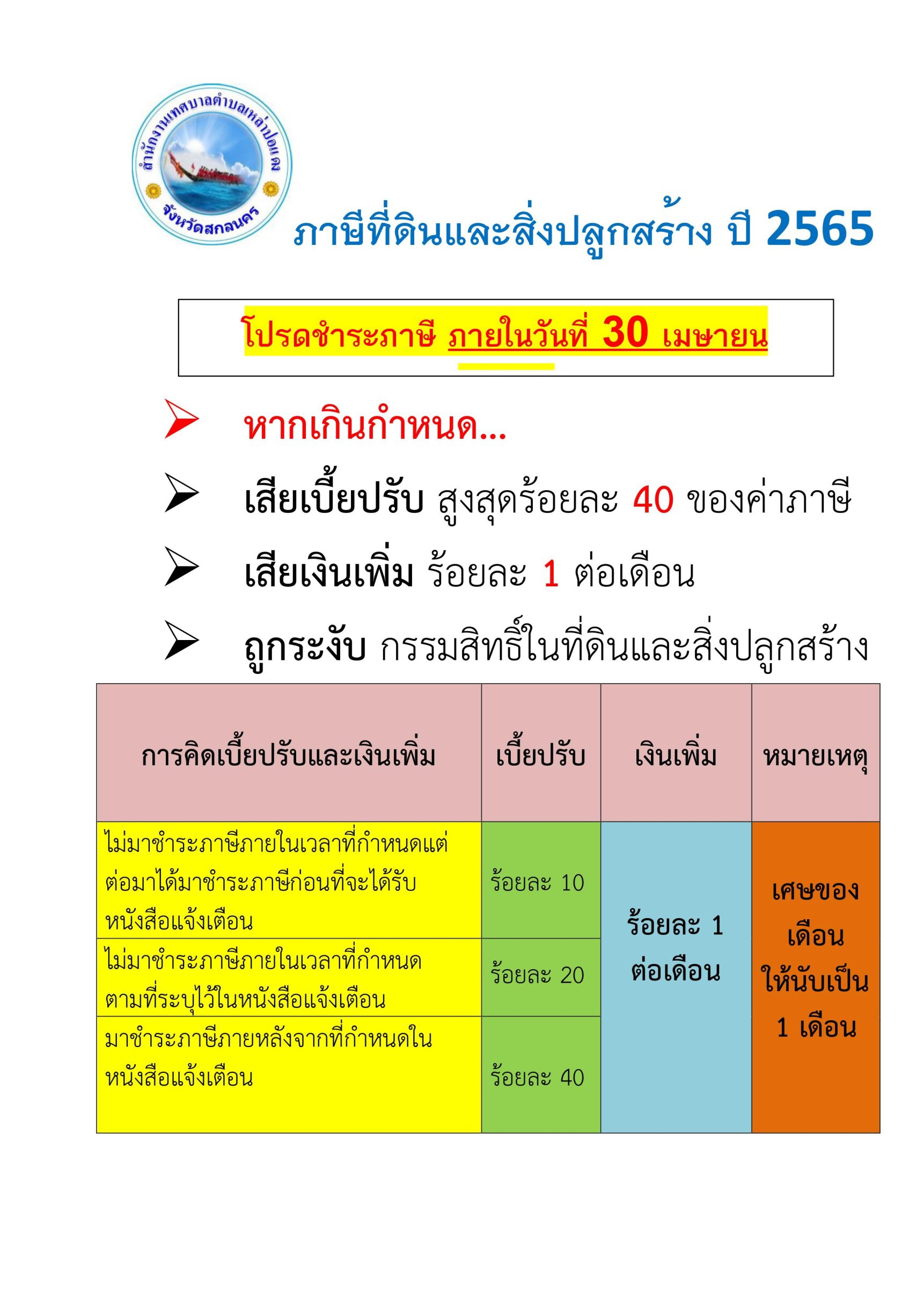 ภาษีที่ดินและสิ่งปลูกสร้าง ปี 2565