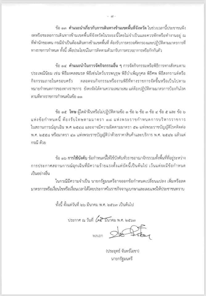 ข้อกำหนด ออกตามความในมาตรา 9 แห่งพระราชกำหนดการบริหารราชการในสถานการณ์ฉุกเฉิน พ.ศ.2548 (ฉบับที่ 1) ทั้งนี้ ตั้งแต่วันที่ 26 มีนาคม พ.ศ. 2563 เป็นต้นไป
