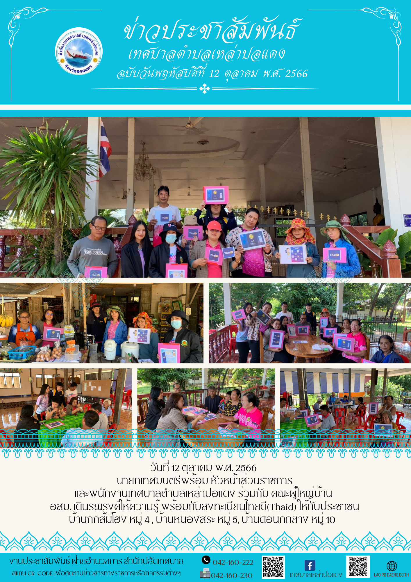 ประชาสัมพันธ์ เดินรณรงค์ให้ความรู้ พร้อมกับลงทะเบียนไทยดี(Thaid) ให้กับประชาชน บ้านกกส้มโฮง หมู่ 4 , บ้านหนองสระ หมู่ 5, บ้านดอนกกยาง หมู่ 10