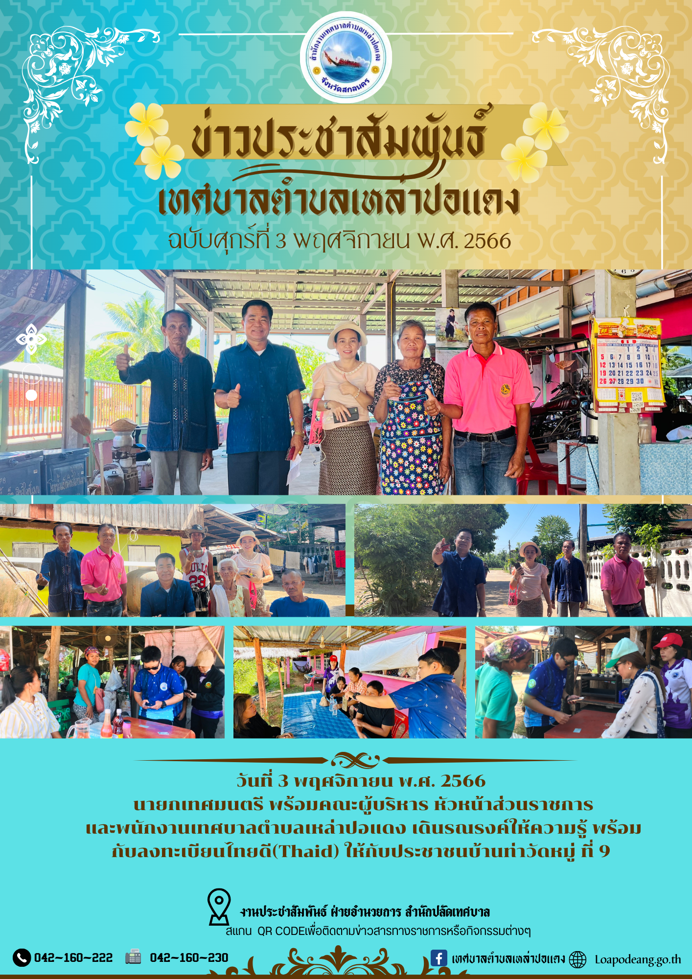 ประชาสัมพันธ์ เดินรณรงค์ให้ความรู้ พร้อมกับลงทะเบียนไทยดี(Thaid) ให้กับประชาชนบ้านท่าวัดหมู่ ที่ 9