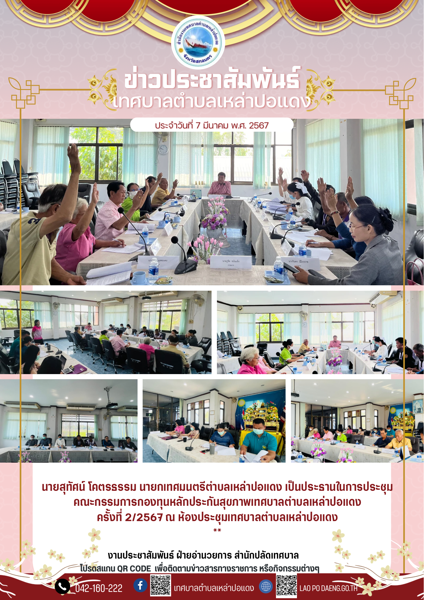 ประชาสัมพันธ์ ประชุมคณะกรรมการกองทุนหลักประกันสุขภาพเทศบาลตำบลเหล่าปอแดงครั้งที่ 2/2567