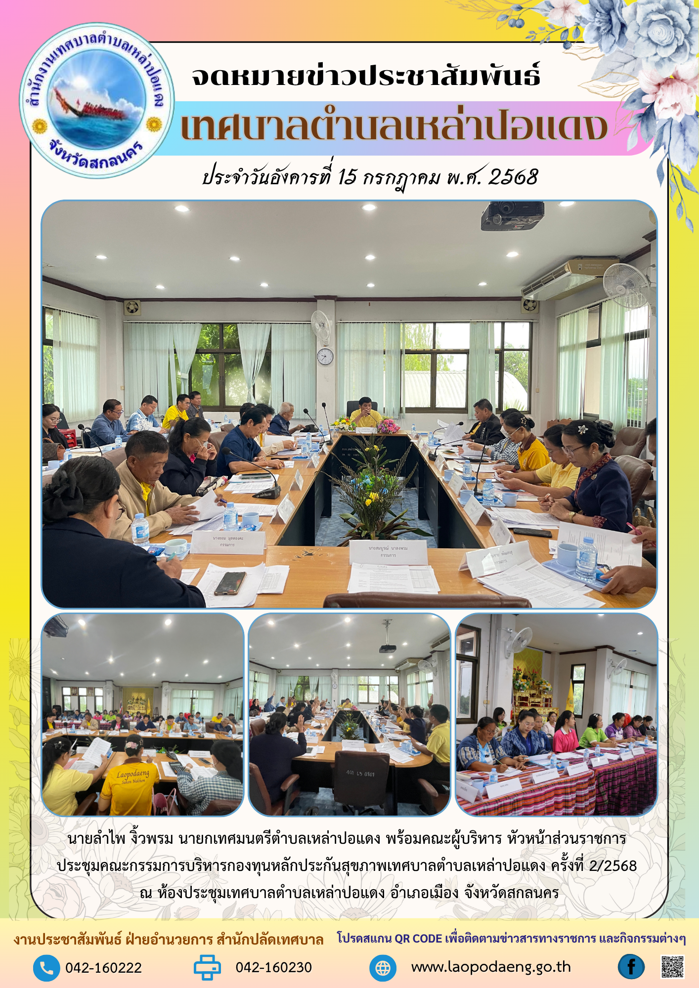 ประชาสัมพันธ์ นายลำไพ งิ้วพรม นายกเทศมนตรีตำบลเหล่าปอแดง พร้อมคณะผู้บริหาร ประชุมคณะกรรมการบริหารกองทุนหลักประกันสุขภาพเทศบาลตำบลเหล่าปอแดง ครั้งที่ 2/2568 ณ ห้องประชุมเทศบาลตำบลเหล่าปอแดง