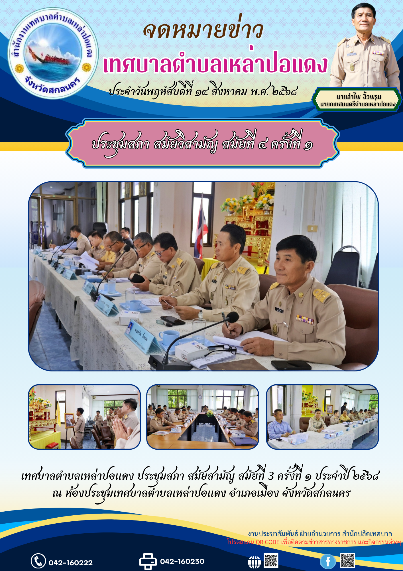 ประชาสัมพันธ์ เทศบาลตำบลเหล่าปอแดง ประชุมสภา สมัยสามัญ สมัยที่ 3 ครั้งที่ ๑ ประจำปี ๒๕๖๘ ณ ห้องประชุมเทศบาลตำบลเหล่าปอแดง