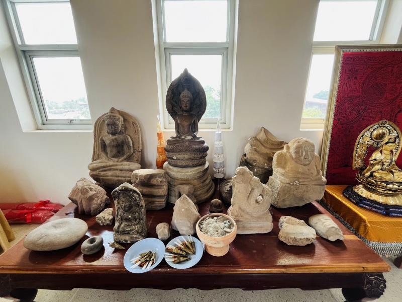 description ในสมัยพระเจ้าพรหมเทโวโพธิสัตว์ได้สร้างวัดที่สำคัญ 3 วัด ได้แก่ วัดเหนือชาวขอมสร้าง วัดกลางชาวมอญสร้าง วัดใต้ชาวลาวสร้าง เมื่อเมืองถูกตีแตกกลายเป็นเมืองร้าง ต่อมาราษฎรที่แตกแยกและมาจากถิ่นอื่นได้ย้ายกลับมารวมตัวกันเป็นหมู่บ้านและได้สร้างวัดขึ้นใหม่ คือ วัดแจ้งสมสะอาด ต่อมาเปลี่ยนชื่อเป็นวัดมหาพรหมโพธิราช ตามนามเจ้าเมือง พบซากฐานอาคาร ปรากฏเป็นแนวศิลาแลงและเนินอิฐ ยาวประมาณ 25 เมตร กว้าง 10 เมตร สันนิษฐานว่าเป็นที่ตั้งของอุโบสถหรือสิมเก่า โบราณวัตถุที่เก็บรักษา ได้แก่ พระพุทธรูปหินทราย สมัยทวารวดี ขนาด หน้าตักกว้าง ประมาณ 60 เซนติเมตร สูงประมาณ 120 เซนติเมตร ลักษณะพระเศียรหัก ปัจจุบันได้นำมาวางต่อกันโดยไม่ได้นำวัสดุใดมาเชื่อม พระบาทและท่อนองค์บางส่วนแตกหักไป ประทับนั่งปางสมาธิราบบนฐานรูปบัวหงาย สภาพค่อนข้างสมบูรณ์ พระพุทธรูปหินทราย สมัยลพบุรี ขนาด หน้าตักกว้าง ประมาณ 40 เซนติเมตร สูงประมาณ 60 เซนติเมตร ลักษณะ เป็นพระพุทธรูปทรงเครื่องน้อย ประทับนั่งขัดสมาธิราบอยู่บนฐานบัวหงาย องค์พระพุทธรูปมีแผ่นหินทรายยึดติดเป็นแผ่นหลัง สภาพค่อนข้างสมบูรณ์ นอกจากนี้ยังพบเศษชิ้นส่วนประติมากรรมหินทรายอีกจำนวนหนึ่ง ก้อนศิลาแลงตกกระจายอยู่จำนวนหนึ่ง ซึ่งโบราณวัตถุได้เก็บไว้ในอาคารพิพิธภัณฑ์วัดมหาพรหมโพธิราชในบริเวณวัดถัดจากพระอุโบสถไปทางทิศเหนือ person admin