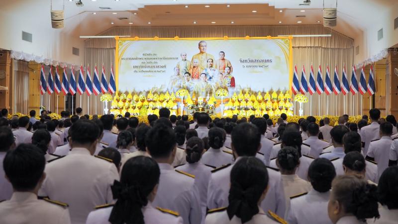 นายลำไพ งิ้วพรม นายกเทศมนตรีตำบลเหล่าปอแดง พร้อมคณะผู้บริหาร และข้าราชการ ร่วมพิธีวางพานพุ่มดอกไม้ เพื่อถวายราชสักการะ เนื่องในวันที่ระลึกพระบาทสมเด็จพระพุทธยอดฟ้าจุฬาโลกมหาราชและวันที่ระลึกมหาจักรีบรมราชวงศ์ ประจำปี 2569 ณ หอประชุมจามจุรี ๑ มหาวิทยาลัยราชภัฏสกลนคร อำเภอเมือง จังหวัดสกลนคร