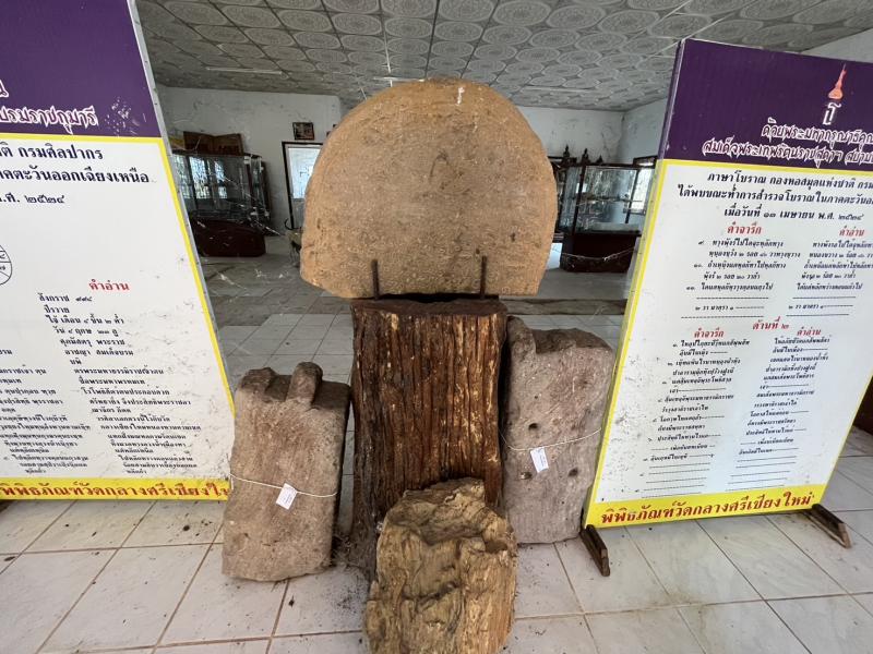 description ภายในพิพิธภัณฑ์จัดแสดงโบราณวัตถุต่างๆ อาทิ พระเครื่อง พระพิมพ์โบราณ เครื่องมือเครื่องใช้โบราณยุคโลหะ เครื่องปั้นดินเผาสมัยก่อนประวัติศาสตร์ นอกจากนี้ภายในบริเวณวัดยังเป็นแหล่งกลุ่มใบเสมาหินสมัยทวาราวดีรุ่นที่ 1 อายุราวพุทธศตวรรษที่ 12-16 โดยพบตั้งจำหลักอยู่ 9 หลักๆ ละ 2 ใบ(ใบเสมาคู่) ประจำอยู่ทั้ง 8 ทิศ ตั้งอยู่บนเนินอีก 3 ใบ รวมพบทั้งสิ้น 21 ใบ นับว่าเป็นแหล่งที่พบใบเสมาหินมากที่สุดในแถบภาคอีสาน ปัจจุบันกลุ่มใบเสมาหินเหลืออยู่ 16 ใบ โดนขโมยไป 5 ใบ นอกจากนี้ภายในวัดยังมีสระน้ำโบราณอายุราว 1,300-1500 ปี เดิมมีกำแพงหินศิลาแลงป้องกันดินพังทั้ง 4 ด้าน มีบันไดหินศิลาแลงขึ้นลงหัวท้ายสระทั้ง 2 ด้าน ปัจจุบันอยู่ในสภาพทรุดโทรม กำลังรอการบูรณะ person admin