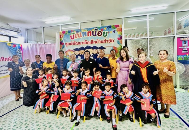 นายลำไพ งิ้วพรม นายกเทศมนตรีตำบลเหล่าปอแดง พร้อมคณะผู้บริหาร และสมาชิกสภาฯ เป็นประธาน มอบวุฒิบัตร บัณฑิตน้อย ประจำปีการศึกษา 2569 ร่วมกับคณะครู ผู้ปกครอง ณ ศูนย์พัฒนาเด็กเล็กบ้านท่าวัด ตำบลเหล่าปอแดง อำเภอเมือง จังหวัดสกลนคร