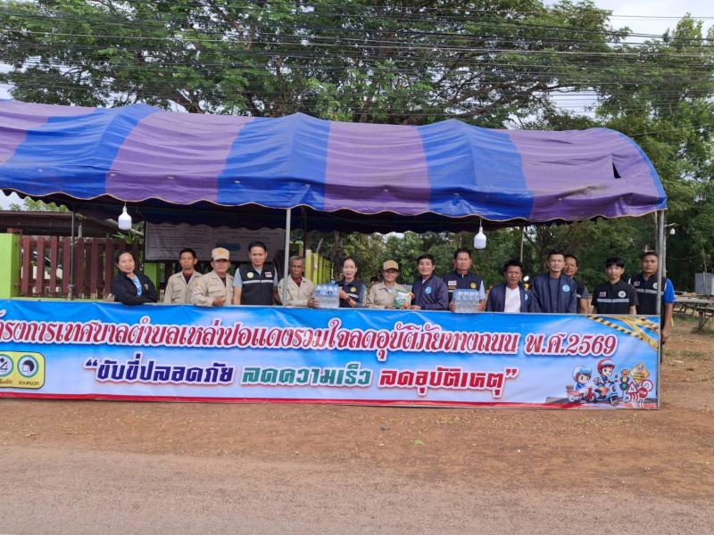 นายลำไพ งิ้วพรม นายกเทศมนตรีตำบลเหล่าปอแดง พร้อมคณะผู้บริหาร สมาชิกสภาฯ ตรวจเยี่ยมด่านพร้อมกับให้กำลังใจตาม โครงการเทศบาลตำบลเหล่าปอแดงรวมใจลดอุบัติเหตุทางถนน พ.ศ. 2569 "ขับขี่ปลอดภัยลด ความเร็ว ลดอุบัติเหตุ" ทั้ง 13 ด่าน ในเขตพื้นที่ตำบลเหล่าปอแดง