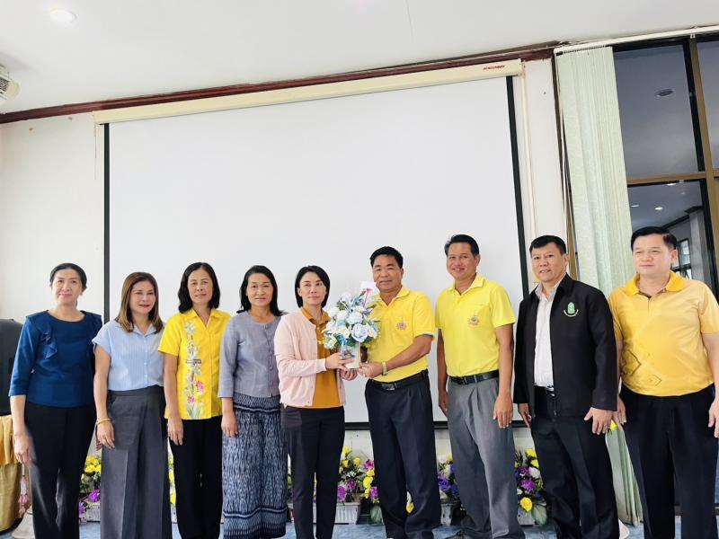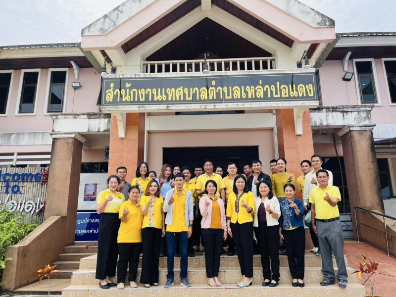 นายสุทัศน์ โคตรธรรม นายกเทศมนตรีตำบลเหล่าปอแดง พร้อมหัวหน้าส่วนราชการ ข้าราชการ พนักงาน ตอนรับ นางสาวเยาวเรศ วิเศษชู นักวิชาการศึกษา ที่มาประจำเทศบาลตำบลเหล่าปอแดง