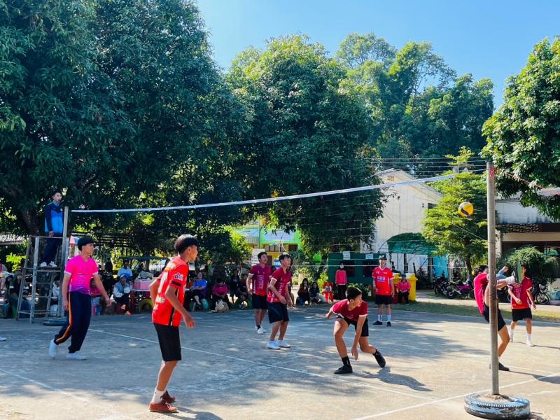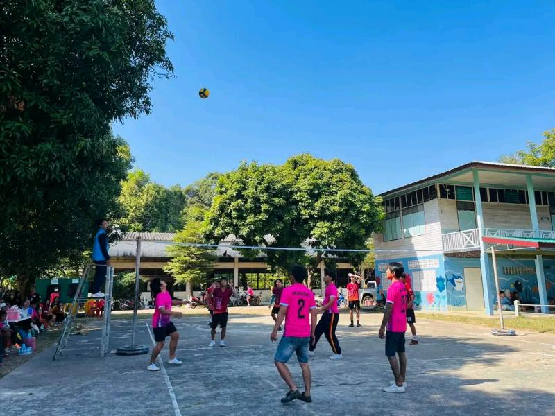 ภาพบรรยากาศกีฬาวอลเลย์บอล โครงการแข่งขันกีฬาตำบลเหล่าปอแดงต้านยาเสพติด ณ สนามโรงเรียนบ้านหนองปลาน้อย (สุทธะเรืองศิลป์) โดย เทศบาลตำบลเหล่าปอแดง