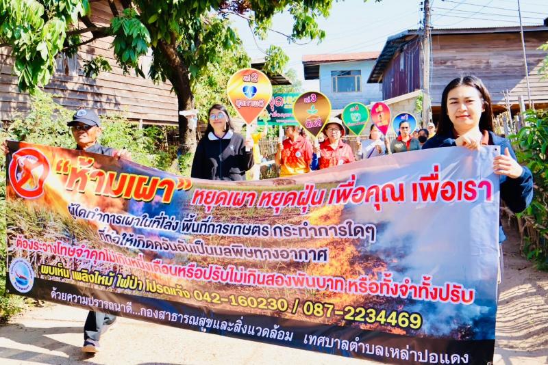 เทศบาลตำบลเหล่าปอแดง จัดกิจกรรมปฏิบัติการ “kick off รณรงค์หยุดเผาทั้งอำเภอ” ณ หมู่ที่ 1 บ้านหนองแคน ตำบลเหล่าปอแดง อำเภอเมือง จังหวัดสกลนคร