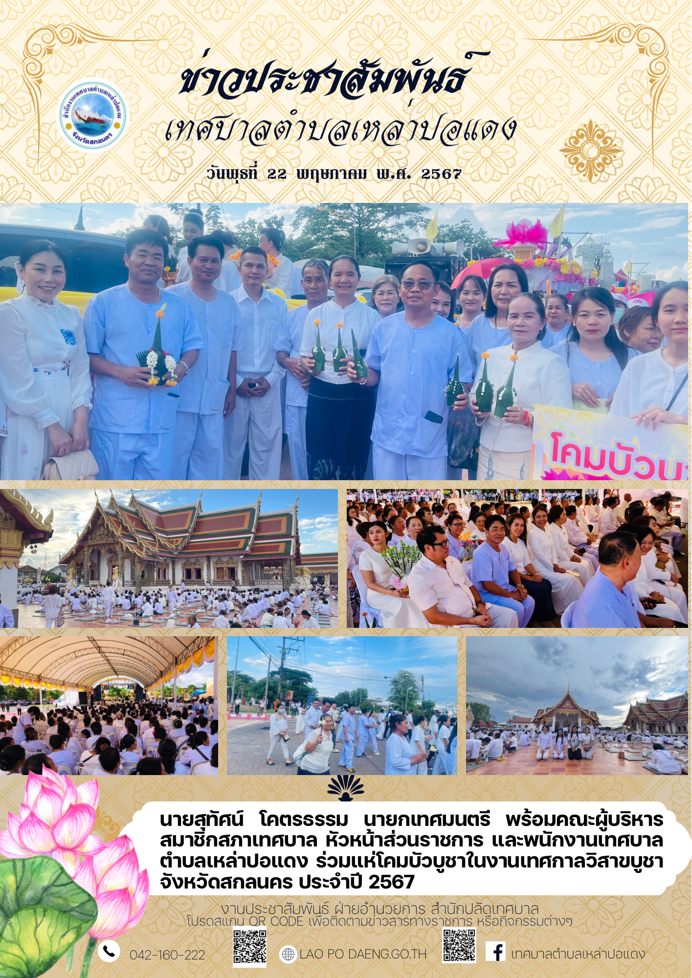 ข่าวประชาสัมพันธ์ แห่โคมบัวบูชาในงานเทศกาลวิสาขบูชา จังหวัดสกลนคร ประจำปี 2567