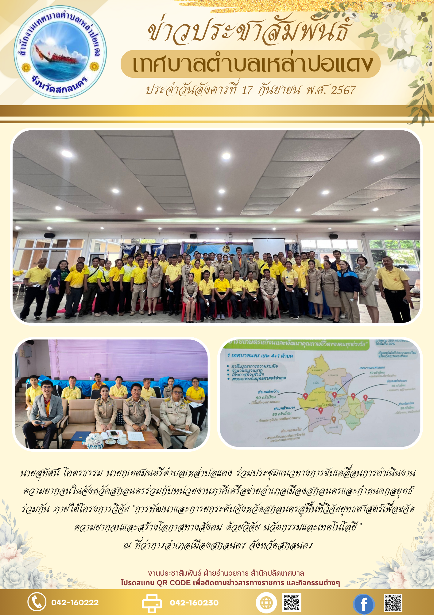 ประชาสัมพันธ์ นายสุทัศน์ โคตรธรรม นายกเทศมนตรีตำบลเหล่าปอแดง ร่วมประชุมแนวทางการขับเคลื่อนการดำเนินงานความยากจนในจังหวัดสกลนคร