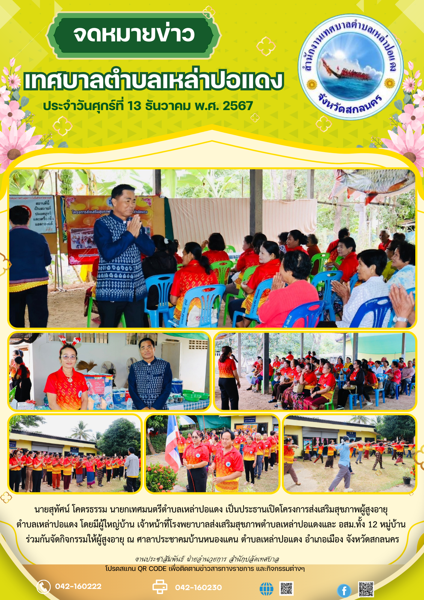 ประชาสัมพันธ์ นายสุทัศน์ โคตรธรรม นายกเทศมนตรีตำบลเหล่าปอแดง เป็นประธานเปิดโครงการส่งเสริมสุขภาพผู้สูงอายุตำบลเหล่าปอแดง